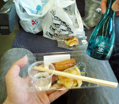 移動は電車。行きからしてもうすでにアレな状態です。(既にビールが入っているのはお約束